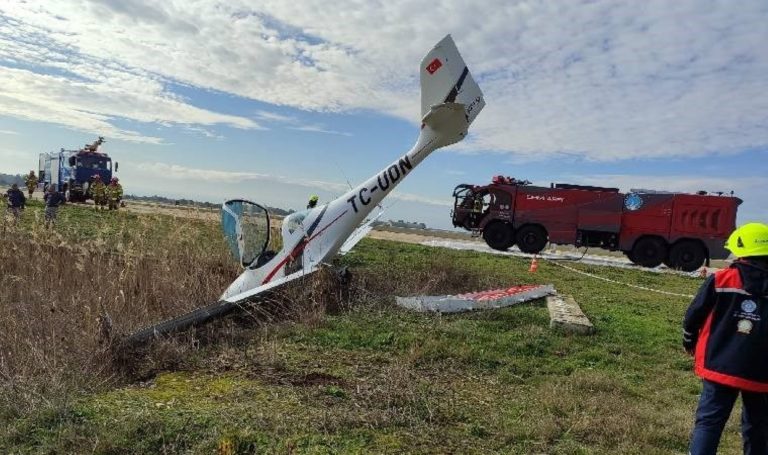 “Özel bir uçuş okuluna ait eğitim uçağı pisti terk ettiği esnada kaza kırım gerçekleşmiş olup, pilot hayati tehlikesi olmayacak şekilde yaralanmıştır.”